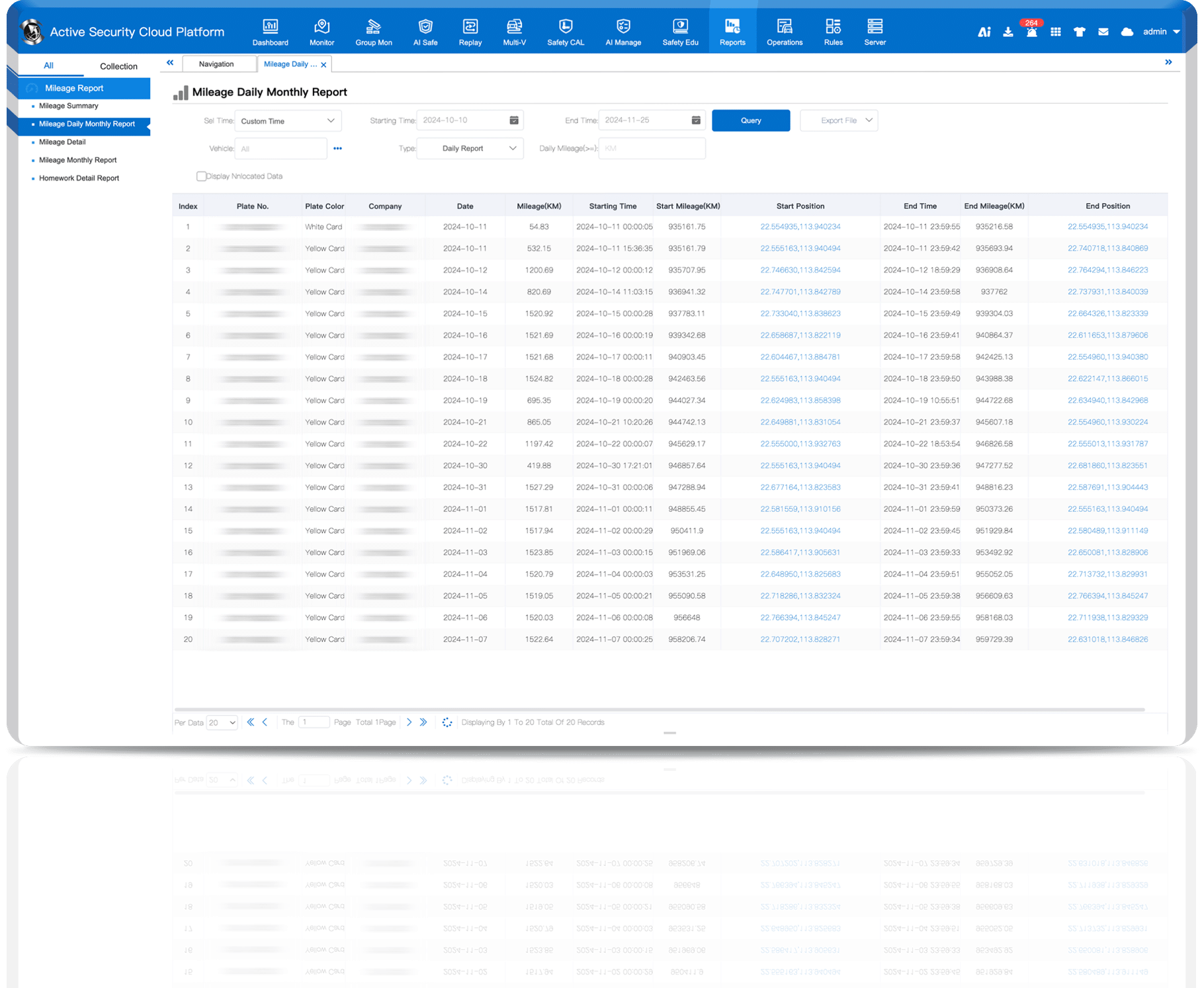 - Generate and view extensive reports on mileage, idling times, fuel consumption, and more.